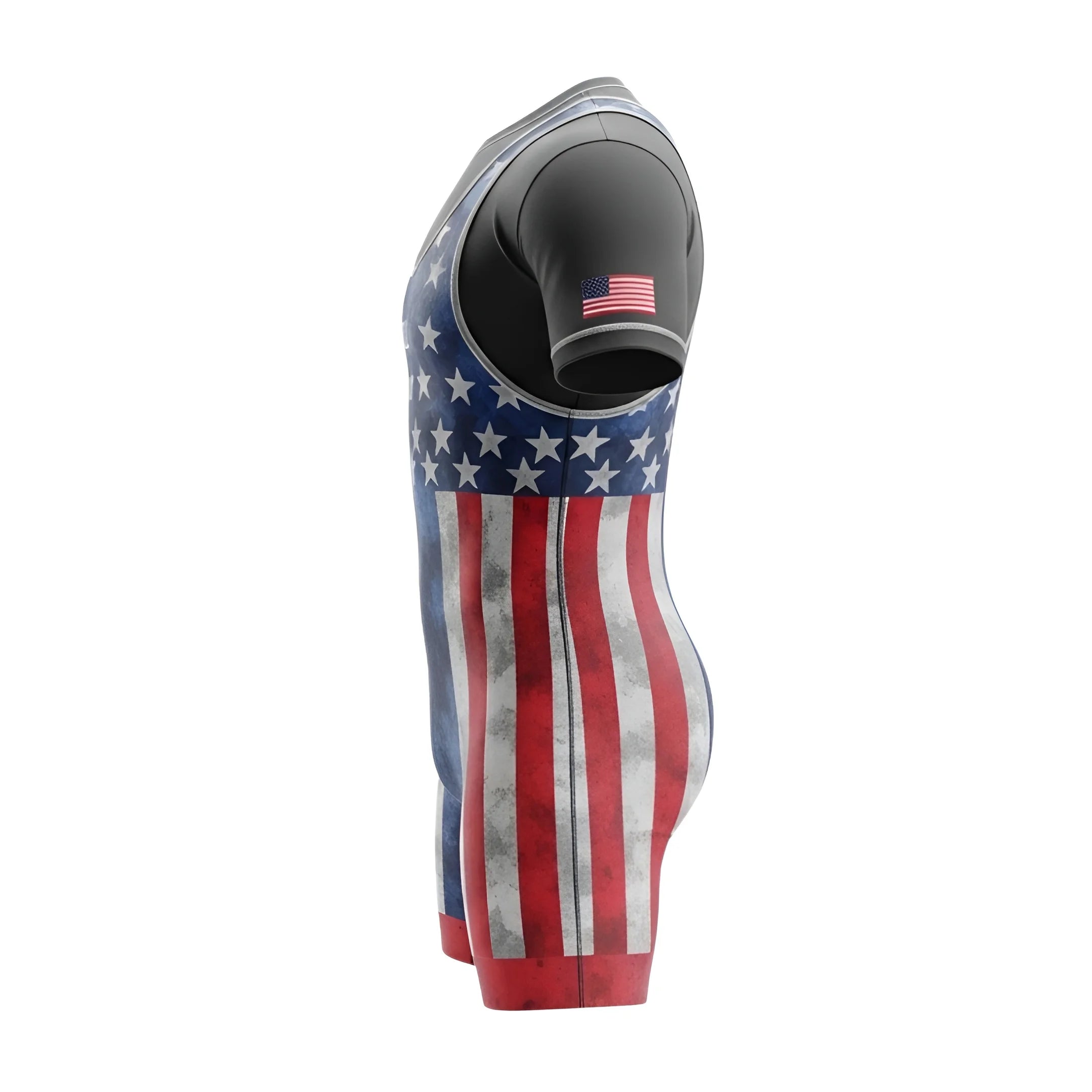 Expand your inventory with this breathable USA-style powerlifting competition singlet designed for wholesale distribution to gyms, fitness centers, and sporting goods retailers. This American-inspired athletic wear features advanced moisture-wicking technology and superior ventilation, perfect for intense training sessions and competition environments. Stock this regulation-compliant competition garment that appeals to patriotic lifters and strength training facilities seeking high-quality, breathable performance wear. Ideal for distributors targeting powerlifting clubs, CrossFit boxes, and strength sports retailers looking for premium athletic apparel with distinctive American styling.