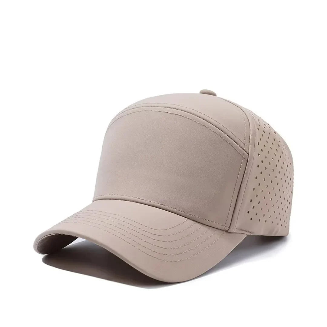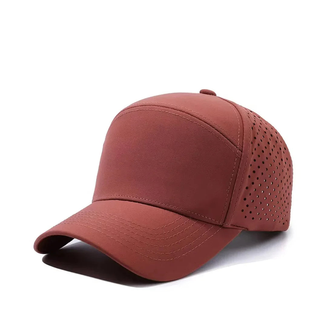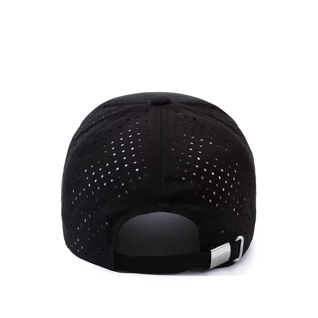 Custom embroidered waterproof running hat with quick dry fabric and laser perforations. Perfect for golf, baseball, and all-day outdoor comfort.