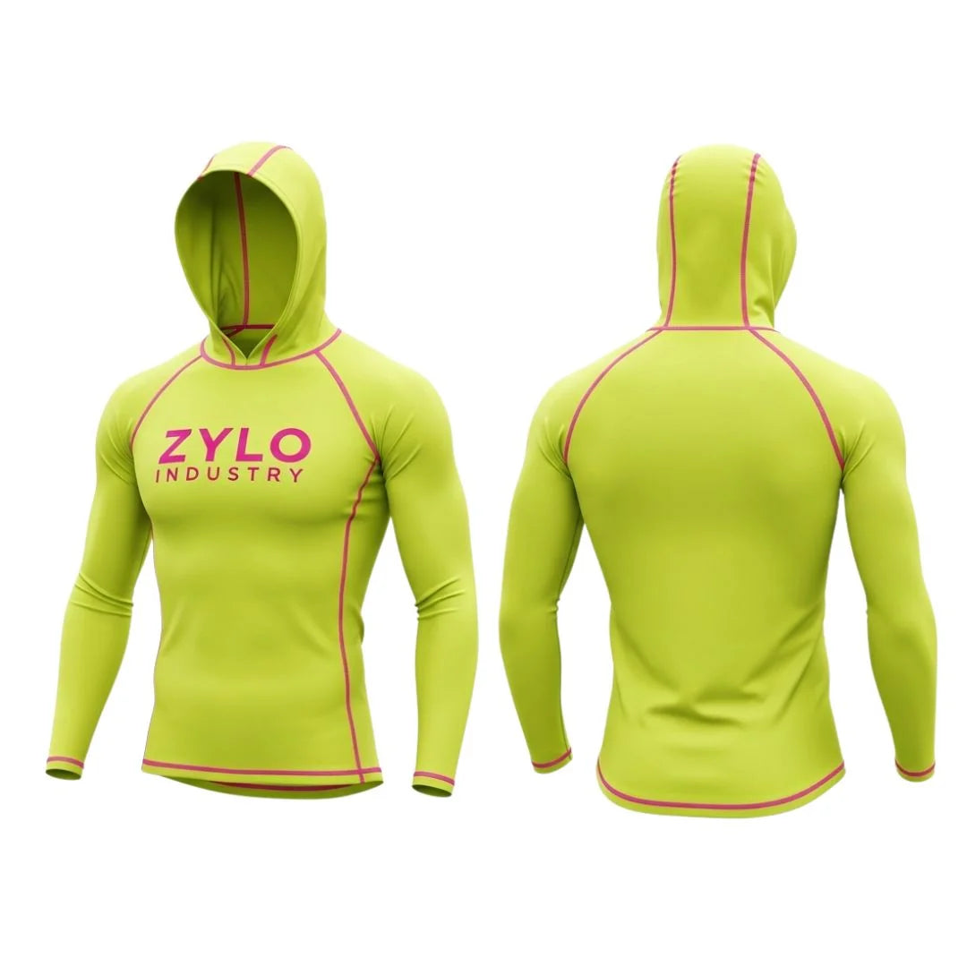 Custom performance hooded fishing shirt with UPF 50 sun protection, quick-dry fabric, and long sleeves—ideal for fishing and outdoor sports.
