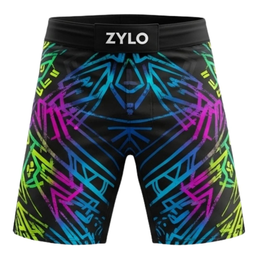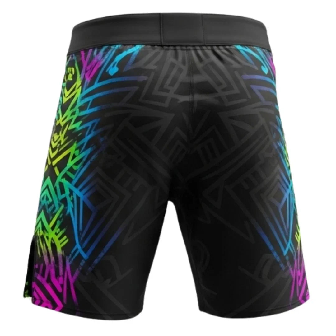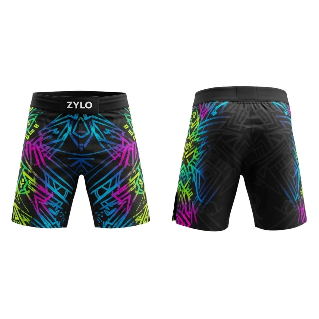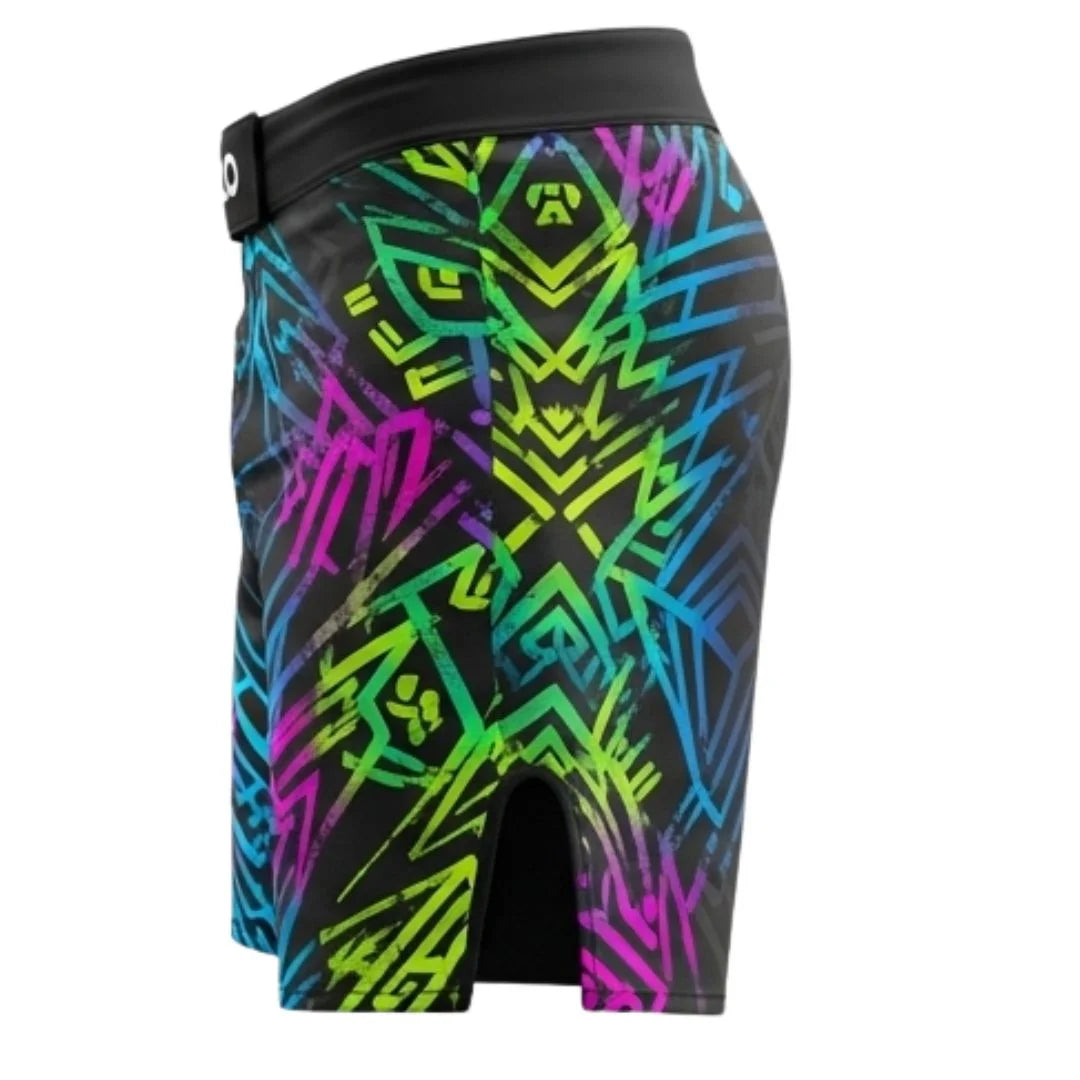 Sublimated men’s fight shorts for BJJ, jiu-jitsu, kickboxing, and boxing. Lightweight, durable, and built for flexibility in martial arts training.
