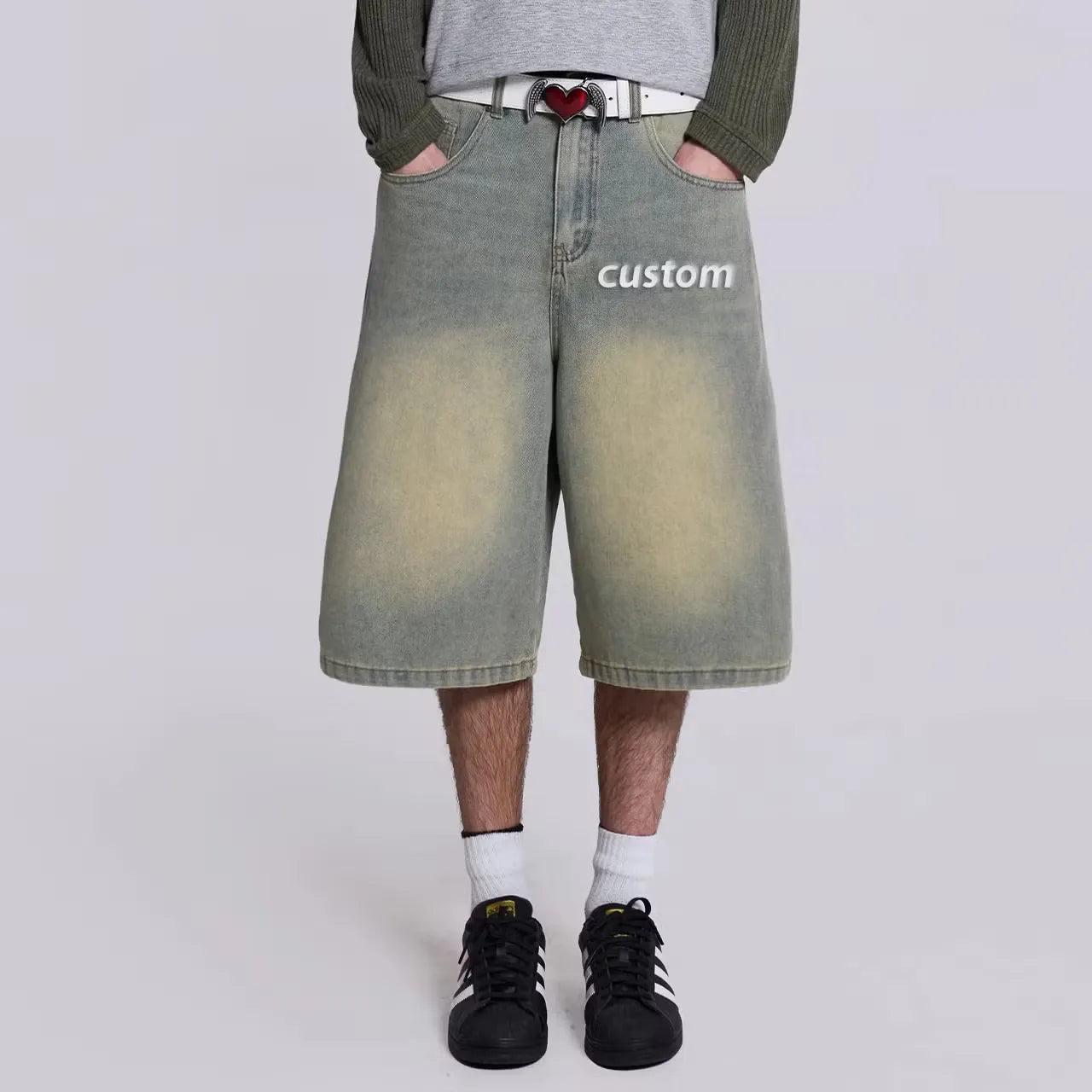 Custom Logo Men′s Acid Wash Baggy Jorts Distressed Embroidered Ripped Raw Hem Shorts
