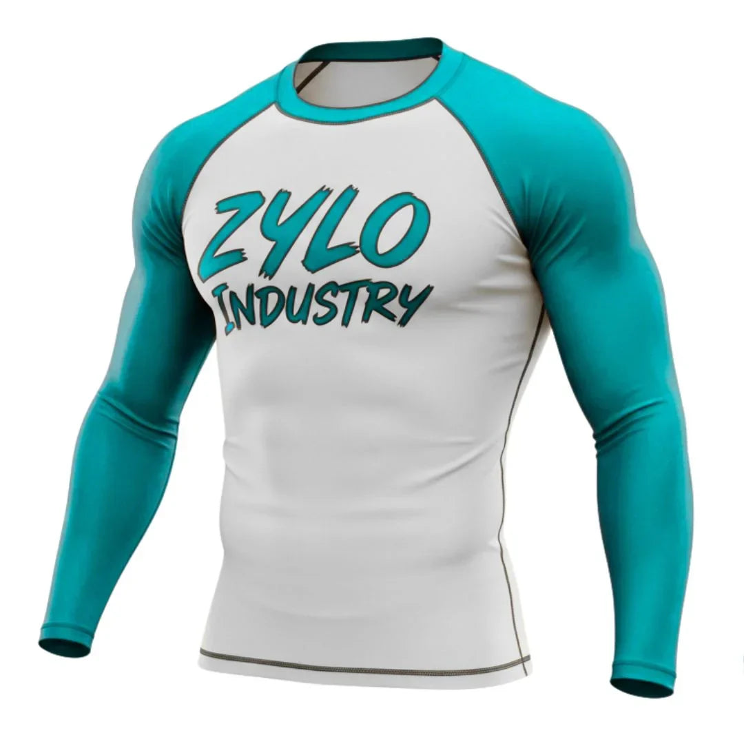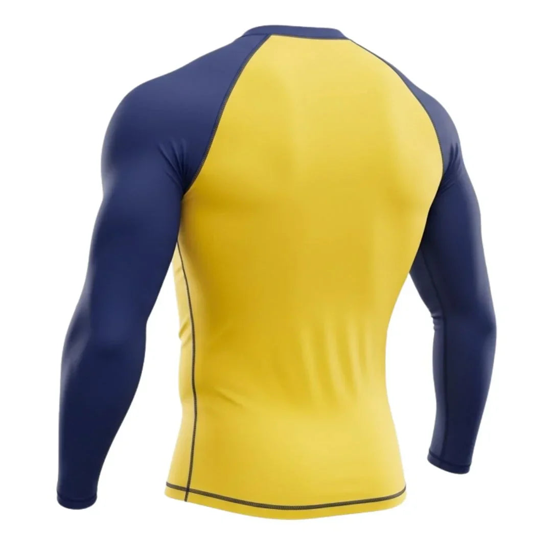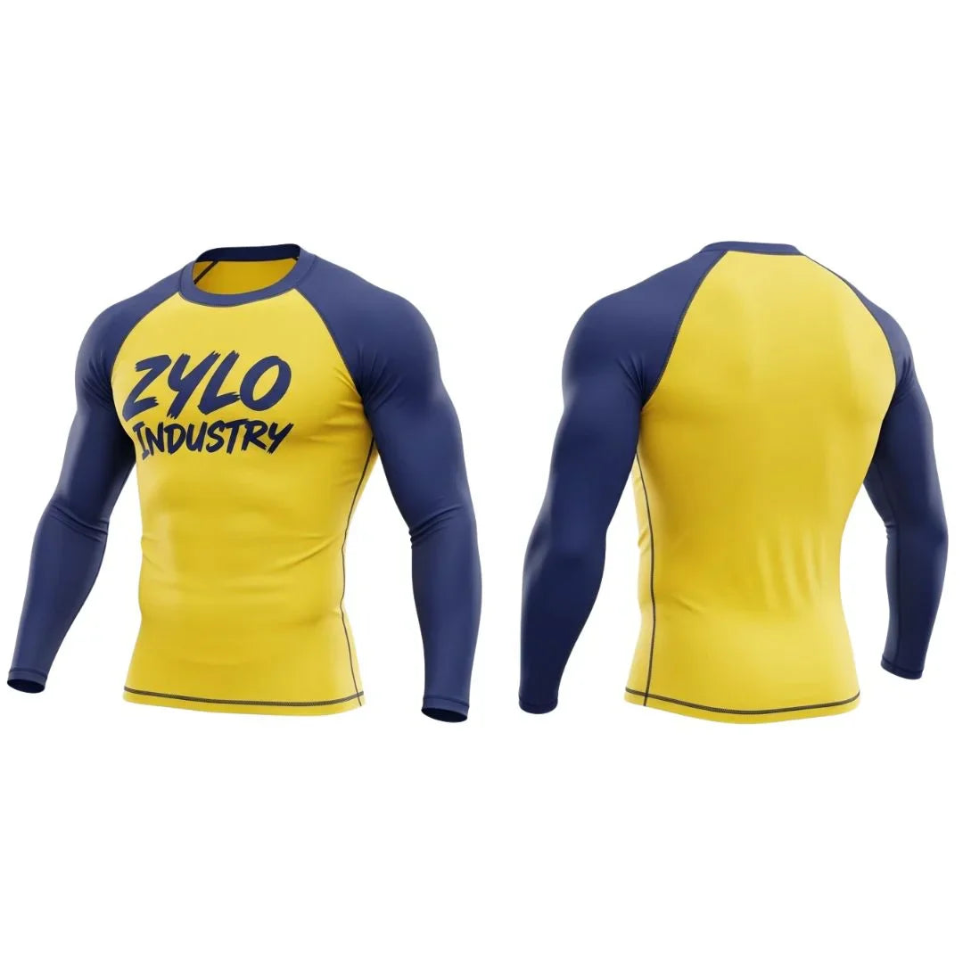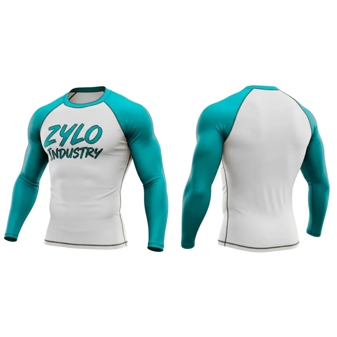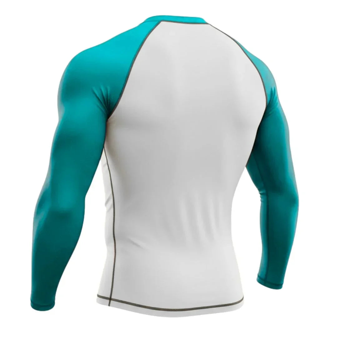 Custom logo long sleeve rash guard with UPF 50, sublimation print, and premium fit—ideal for MMA, BJJ, surfing, and OEM manufacturing.